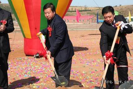 慶典儀式最后,羅志虎市長與劉埃林董事長一起為阿榮旗蒙西年產500萬噸熟料基地一期工程投產點火,并和市、旗及各企業領導一同為二期工程和100萬噸水泥粉磨項目奠基。